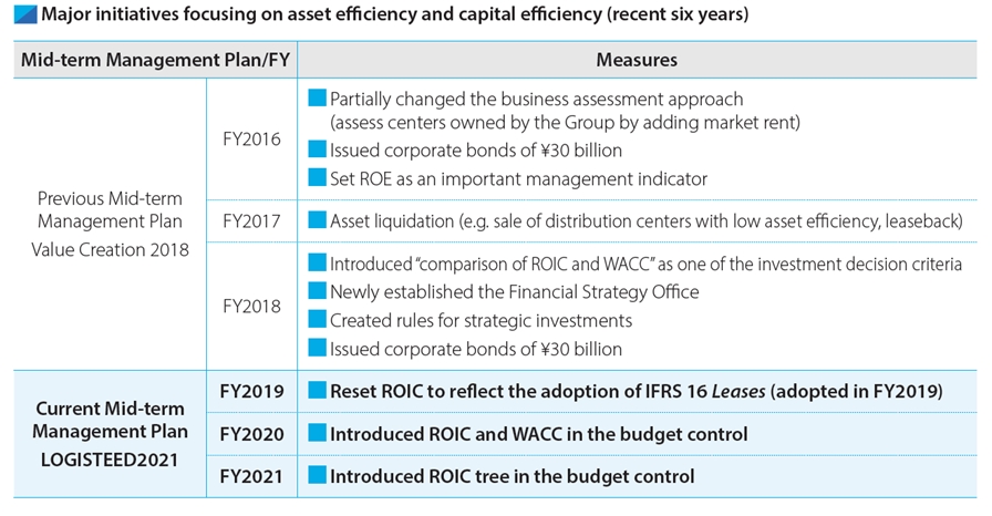 Regarding initiatives for the ROIC management which started in FY2018, we provide e-learning to "spread" it and develop the ROIC tree budget reports to "deepen" it.