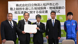 Hitachi Transport System, Ltd. (HTS) is pleased to announce that it has entered into a mutual collaboration agreement for regional development and contribution through athletics with Matsudo city in Chiba Prefecture, Japan.