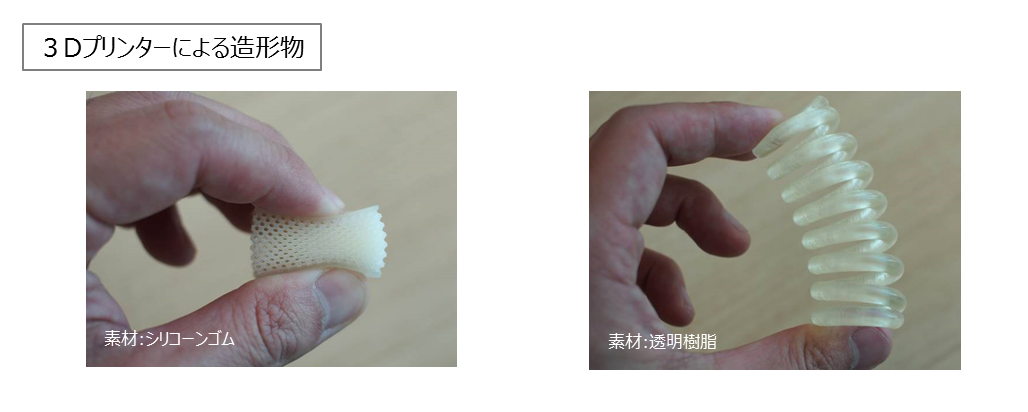 本取り組みでは法人等からの需要が多い、プロトタイプや保守パーツの造形に適したプリンターを導入。複数の素材を用いて、ゴムのような柔らかい素材、硬い素材、耐熱性の高い素材を出力いたします。